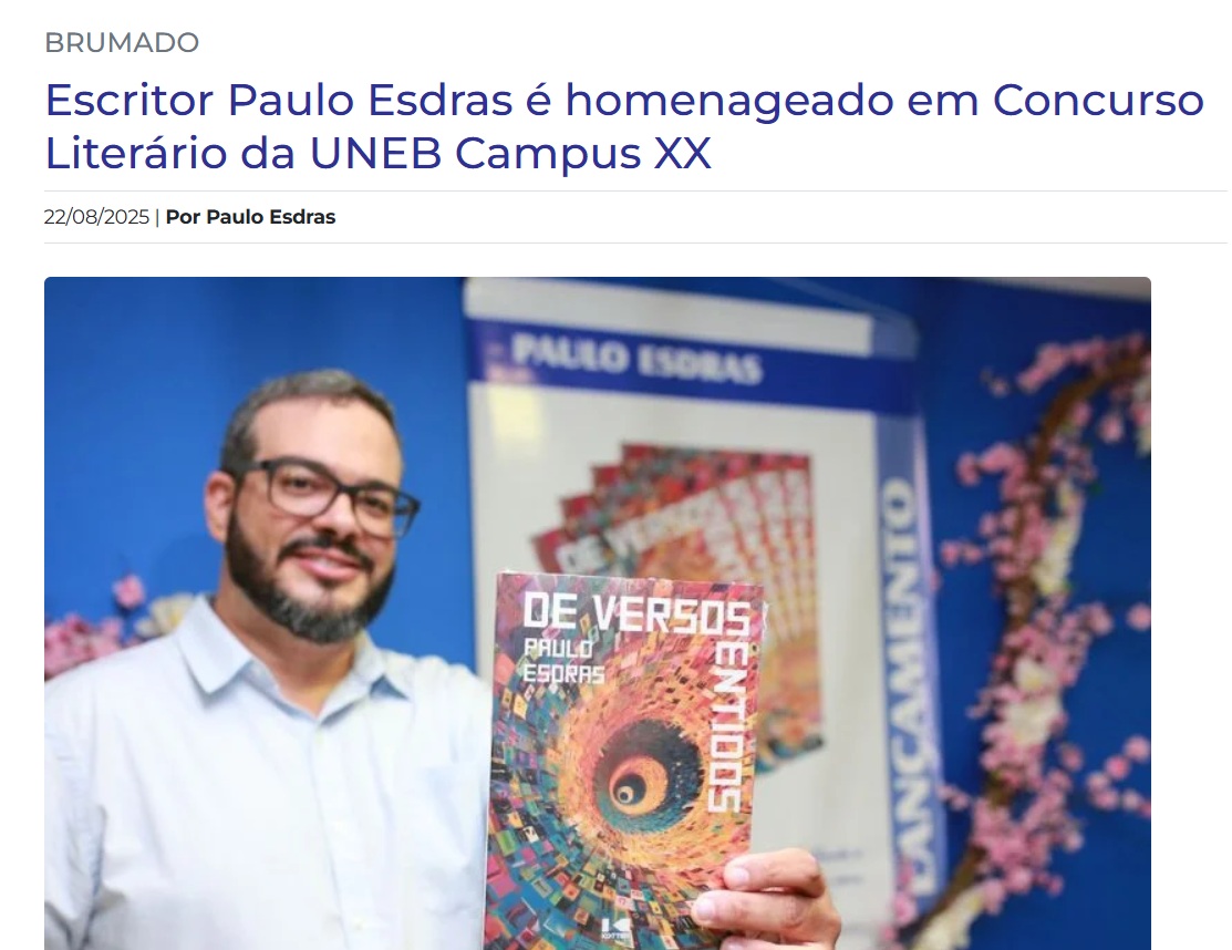 Nascido nas raízes culturais de Salvador e atualmente residente em Brumado, Paulo Esdras é um polivalente publicitário, professor, poeta, escritor e coordenador do inspirador Movimento Cultural Abracadabra.